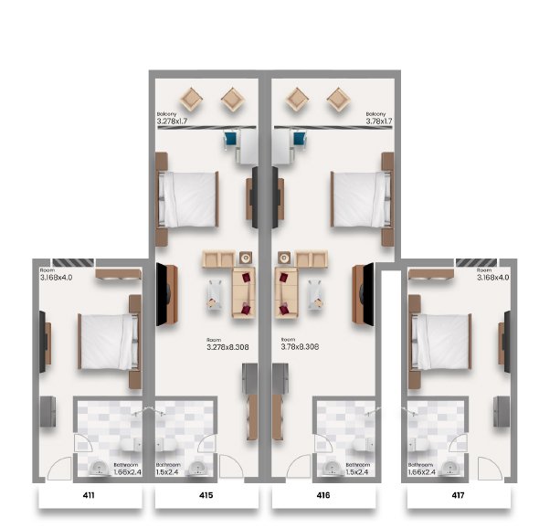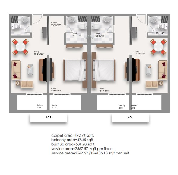 These compact living spaces offer a unique opportunity to maximize utility without sacrificing Style & Comfort. The 1 RK Deluxe & Suite Studio Apartments feature multiple amenities with IPS flooring, OBD wall, and power-coated doors and windows. The layout includes a spacious bedroom, living and dining area, kitchen, and bathroom.